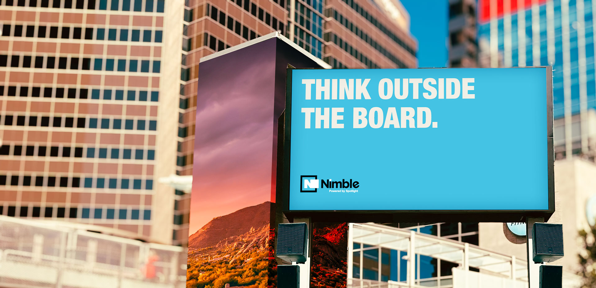 Unlike other billboard companies, Nimble Outdoor billboards are located in high-traffic pedestrian areas and our boards have audio. At the premier CityScape location in Downtown Phoenix, your audience can SEE and HEAR your message!